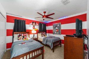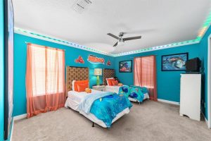 Enjoy this massive home that features over 3,000 square feet!! This 5 Bedroom 5 bathroom home includes a private Stars War themed game/theater room and fantastic themed bedrooms suitable for all ages. Sleep with the fish in our Finding Nemo room, hang with the wizards in the Harry Potter room or have a night with Mickey and Minnie! Relax outside in your private screened in pool that has an attached jacuzzi and a safety gate installed for added security. The lovely dining room and breakfast bar allows everyone to sit comfortably to have a morning cup of joe or a late night snack! The 5 bedrooms are the true definition of Florida with pops of color and charm. Your vacation home rental includes access to the gated community of Paradise Palms that has 24/7 security and features a 9,500 sq. ft. clubhouse which consist of a huge 5,000 sq. ft. pool with a waterfall, movie theater and much more! Located just under 10 miles to the gates of Magic Kingdom, this home is perfect for visiting the parks.