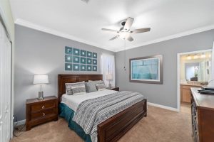 It immediately feels like home, with a stunning resort view, comfy sofa, a coffee table for snacks and drinks, and large smart TVs for movie nights.